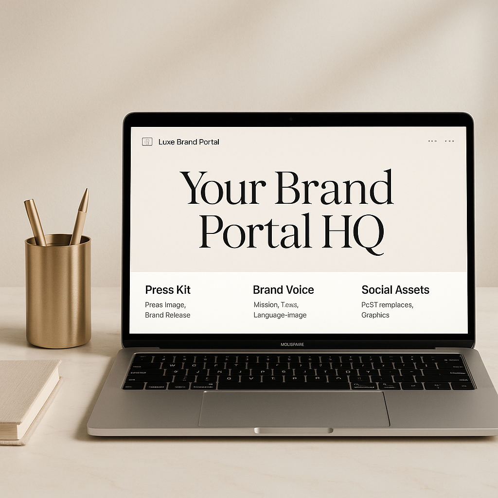 Imagine your entire brand universe — press kits, media assets, tone guides, social templates — not scattered across inboxes and drives, but styled, centralized, and press-ready. That’s what the Luxe Brand Portal delivers: your brand, organized like an editorial spread and automated like a powerhouse system.